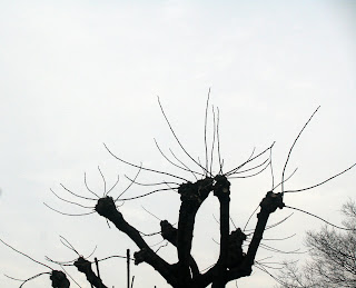 Trees are severely pruned here in the city, but they (usually) branch out again in the spring. It looks and feels like winter in Tokyo these days, but things are beginning to sprout.